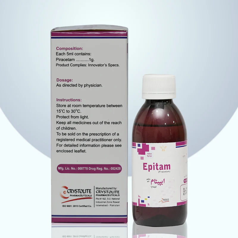 Epitam Syrup 120ml is a medication containing Piracetam, a substance that helps improve brain function. This syrup is often prescribed to individuals who have memory loss, cognitive disorders, or have suffered brain injuries. It works by improving blood flow to the brain and enhancing memory, attention, and mental clarity.