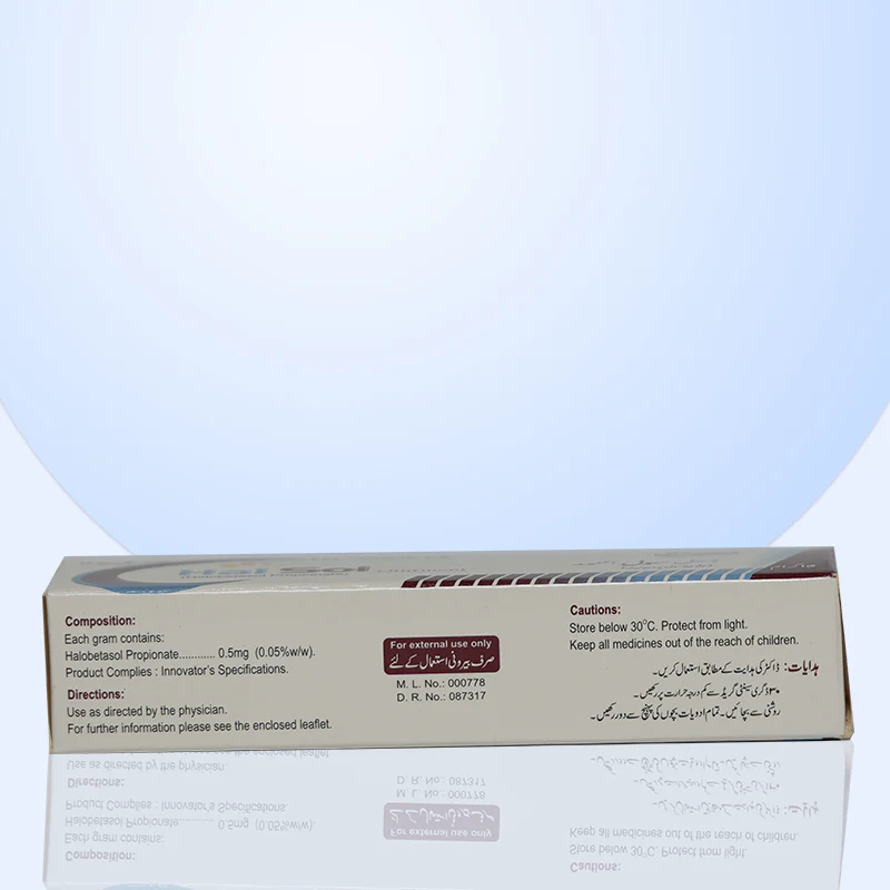 HalSol Ointment, containing Halobetasol Propionate, is a potent topical treatment designed to alleviate skin conditions such as eczema, psoriasis, and dermatitis. This highly effective ointment works by reducing inflammation, redness, and itching, offering fast relief from discomfort caused by various skin disorders. HalSol Ointment provides a powerful, targeted approach to managing skin irritations, promoting healing, and improving skin texture. Suitable for use on affected areas, it helps restore the skin’s natural appearance and provides long-lasting relief. Available in a 15g tube for easy application.