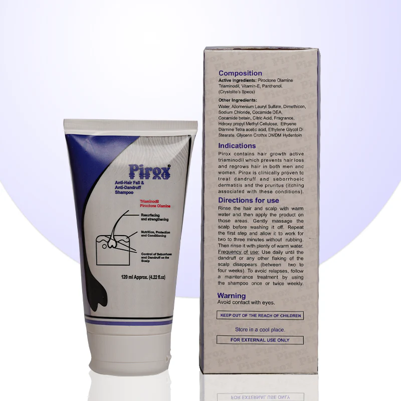 Pirox Anti-Hair Fall & Anti-Dandruff Shampoo is designed to nourish and strengthen your hair while controlling dandruff and preventing hair fall. Its unique formula helps restore hair health and keeps your scalp clean and refreshed.