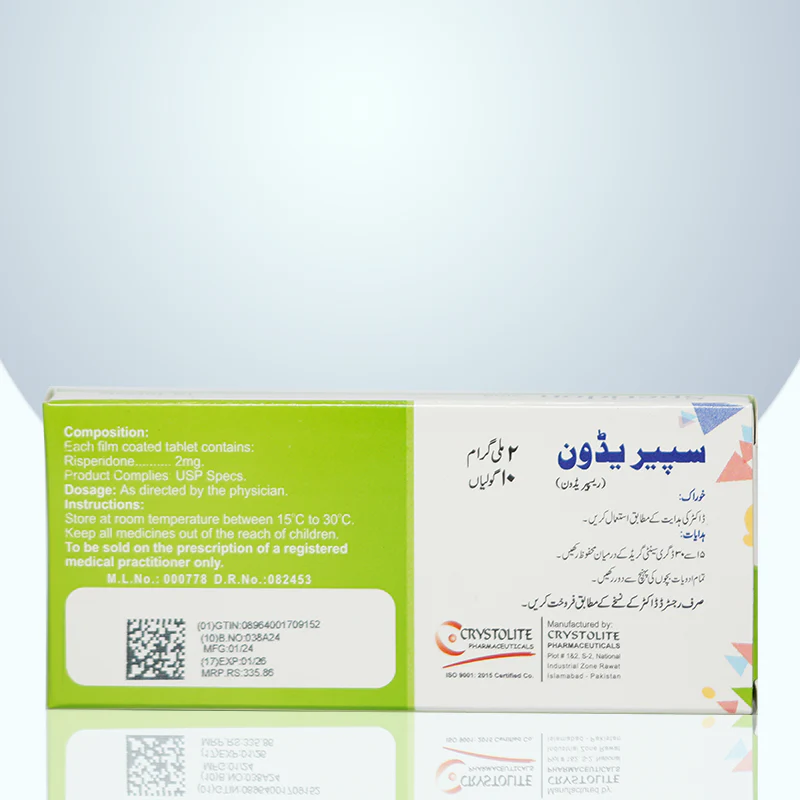 Speridon 2mg (Risperidone) is a medication used to manage mental health conditions like schizophrenia, bipolar disorder, and irritability in autism. It helps to stabilize mood, reduce psychotic symptoms, and improve behavior.