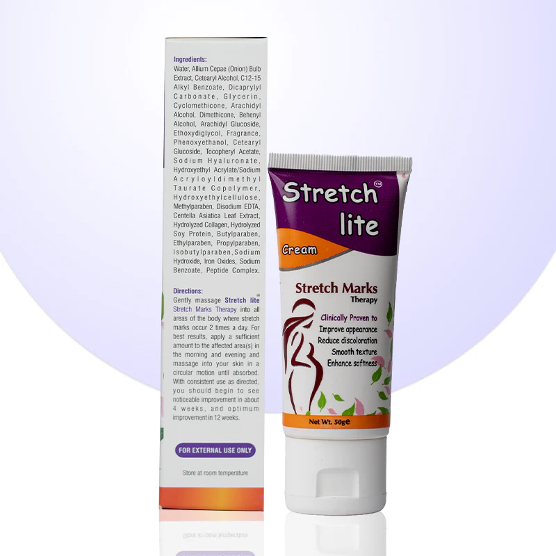 Stretchlite Stretch Marks Therapy Cream helps reduce stretch marks, smooth skin texture, and enhance softness. Clinically proven to improve skin appearance with regular use.